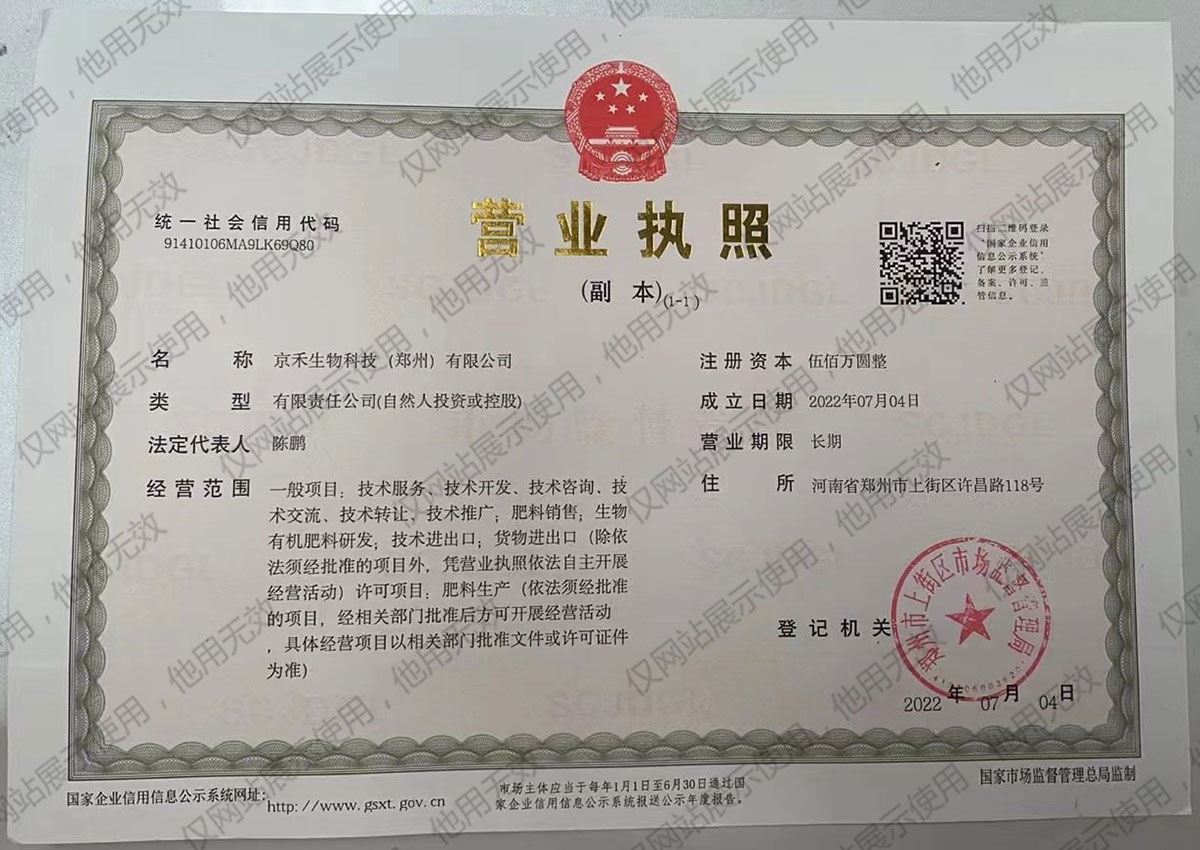 京禾生物科技(郑州)有限公司是一家从事创高品质产品,种类丰富,包含化学合成水溶肥类,EDTA螯合态元素类,碳无机营养小分子液体肥,矿物源植物抗逆剂等产品。豫京禾品牌经过合理布局,精细分工,现以形成完整的组织架构体系和稳定的商业运营管理模式,为产品售前售中售后提供强有力的保障。 公司理念:科技创造价值,创新改变农业,豫京禾为作物增产有动力